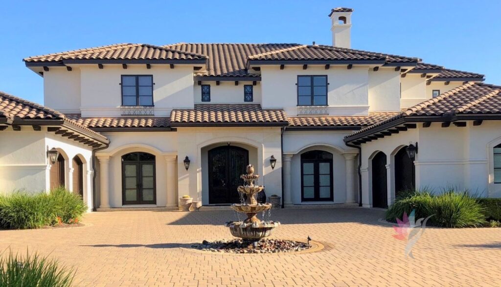 The right exterior paint color depends on which elements are staying. If your home has a stone facade, select a paint color that compliments the stone with a similar undertone. By doing this, your home will have a cohesive color palette and will look beautiful. If your roof is brown, select a paint color with a warm tone, such as a soft creamy white. A black or charcoal roof provides the most versatile paint color options and works well with blue, grey, and white. -Styled Interiors