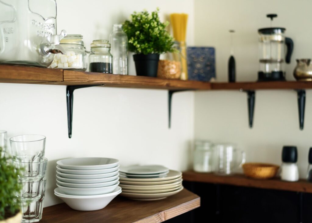 Open shelving is a cabinet alternative where there are no cabinet doors. Instead, you have exposed shelves for storing and displaying kitchen items. It creates an open and airy feel but requires meticulous organization.