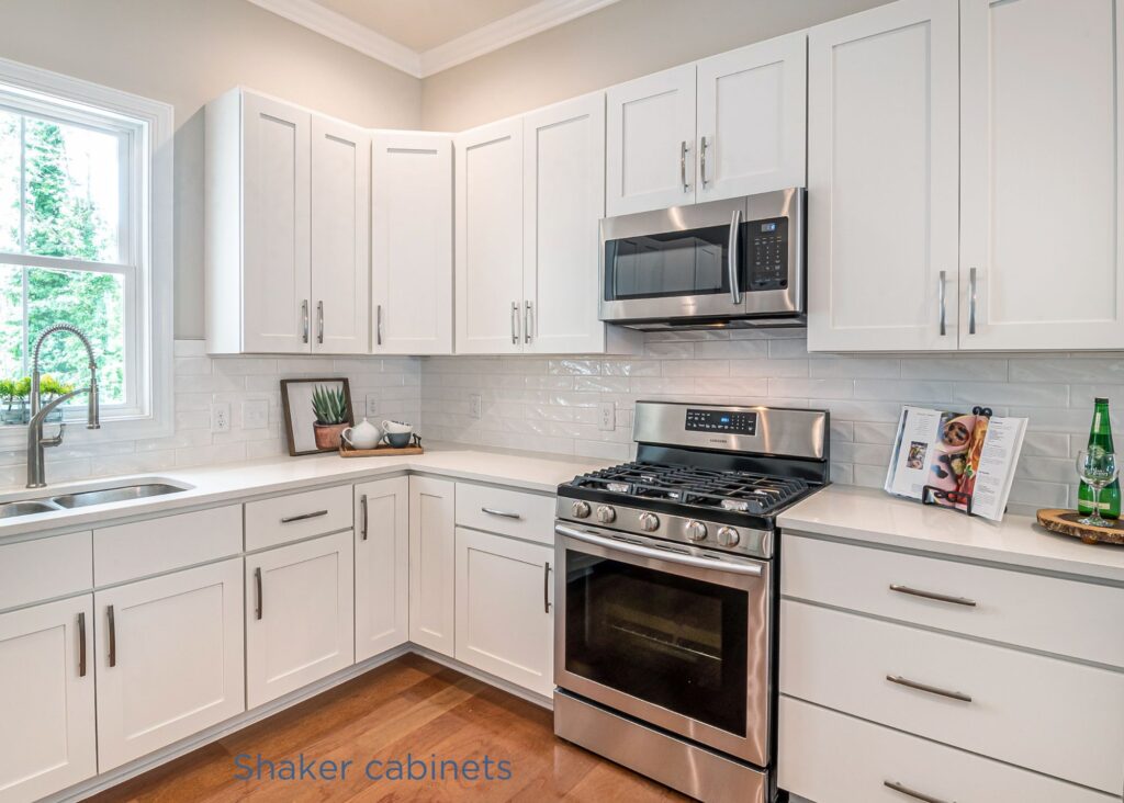 Shaker cabinets are a timeless and versatile choice. They feature a simple, clean design with a flat-panel door that has a recessed center panel. Shaker cabinets are known for their durability and functionality, making them suitable for various kitchen styles, from traditional to contemporary.